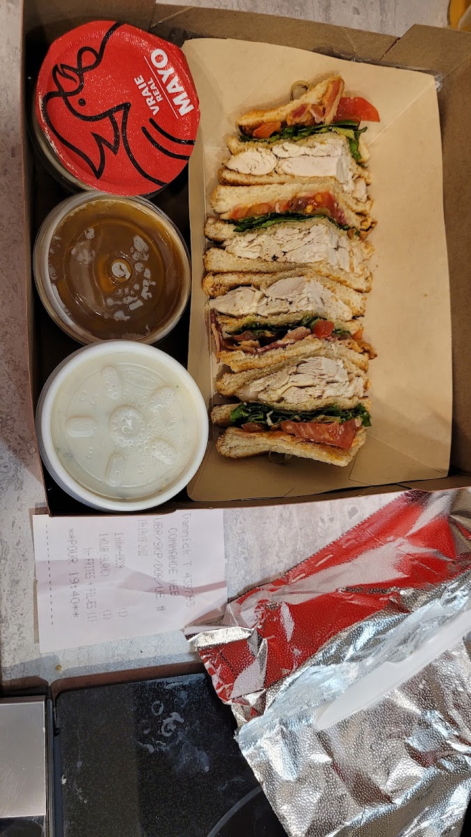 Now, let’s talk about the food. The star of the show is, of course, the rotisserie chicken, perfectly seasoned and roasted to juicy perfection. The Club Sandwich Poulet is another customer favorite-crispy bread, tender chicken, and just the right amount of sauce to make each bite a treat. You can taste the freshness and care that go into each plate. If you’ve got room for dessert, their sweet offerings are a nice finish after a satisfying dinner or quick bite.